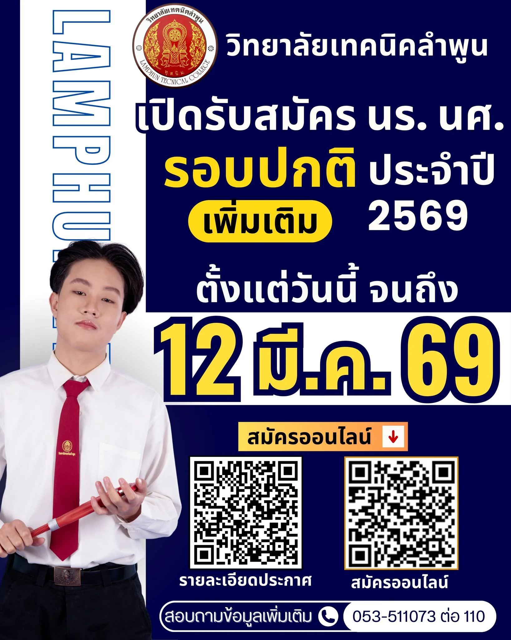 เปิดรับสมัครแล้ววันนี้ อนาคตที่ดีเริ่มที่นี่....วิทยาลัยเทคนิคลำพูน