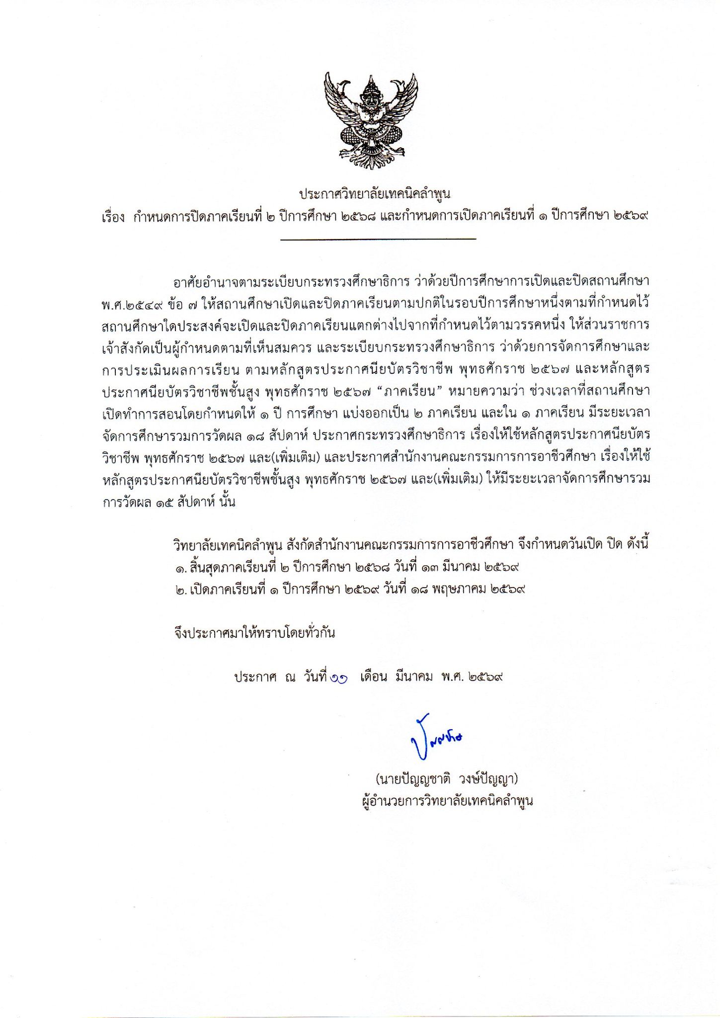 📢📢ประกาศๆ 📢📢 👇👇แจ้งกำหนดการ👇👇 📚กำหนดการปิดภาคเรียน 2/2568 📆 13 มีนาคม 2569 📚กำหนดการเปิดภาคเรียนที่ 1/2569 📅 18 พฤษภาคม 2569